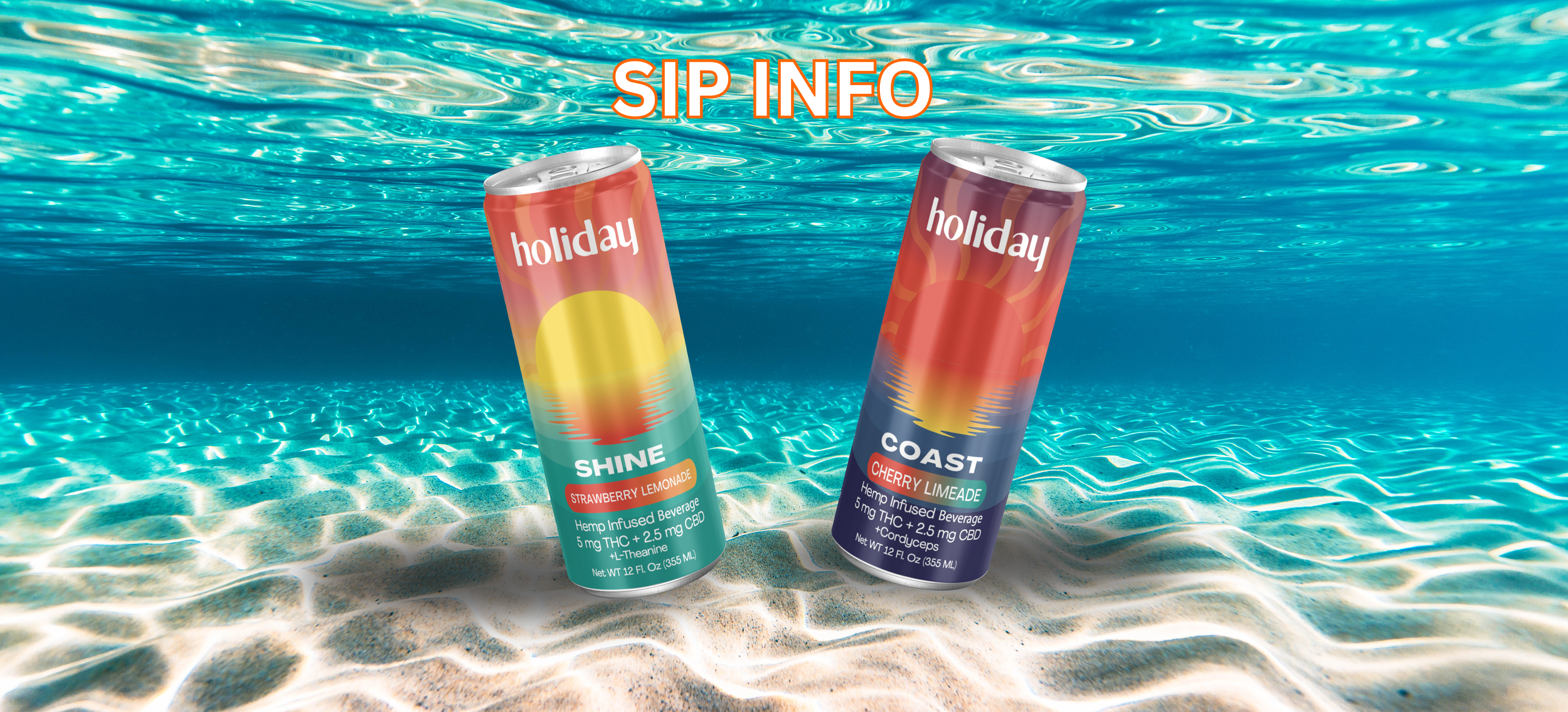 Ideal for winding down after work, enjoying a beach day, or taking time for yourself at home. If your goal is to relax, reach for Coast by Holiday. Designed for relaxation, Coast is a tasty blend of 5mg D9 THC, 2.5mg CBD, and 250mg cordyceps for a calm, easygoing experience.